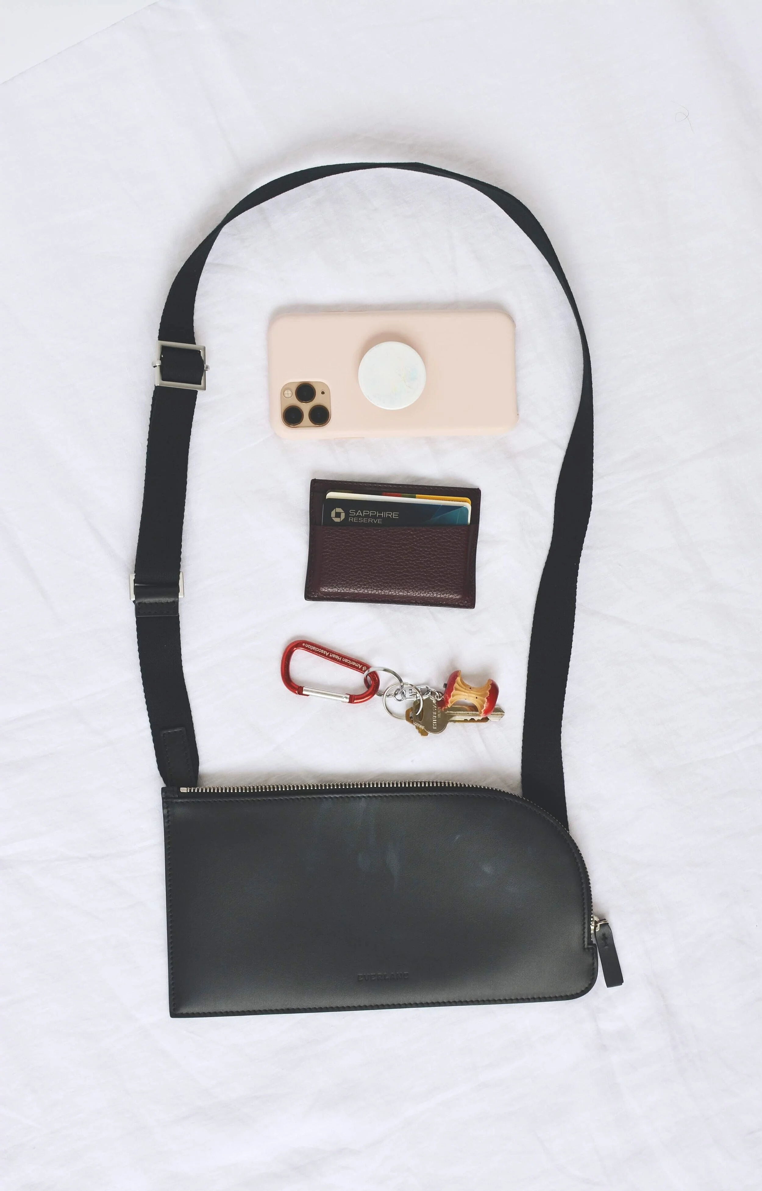 Overall I like it. It does the job well of being easily accessible yet mostly out of the way. It doesn’t hold much though. I can fit my phone, card wallet and keys. That’s it. Forget about it if you have a large wallet or want to carry anything else (sunglasses are a no-go). But if those three things are all you need to carry, then this sling bag might be for you. As usual, Everlane’s leather is top notch and the woven crossbody strap is fully adjustable and sturdy. But my main gripe about this bag is that the straps can get twisted due to the fact they don’t use the usual loop system. Rather the straps are attached to the bag with a hole-peg (stud?) system. If things like twisting straps that don’t lay flat bother you, this bag is not for you. As for me, I don’t use the bag often so I can deal with it.