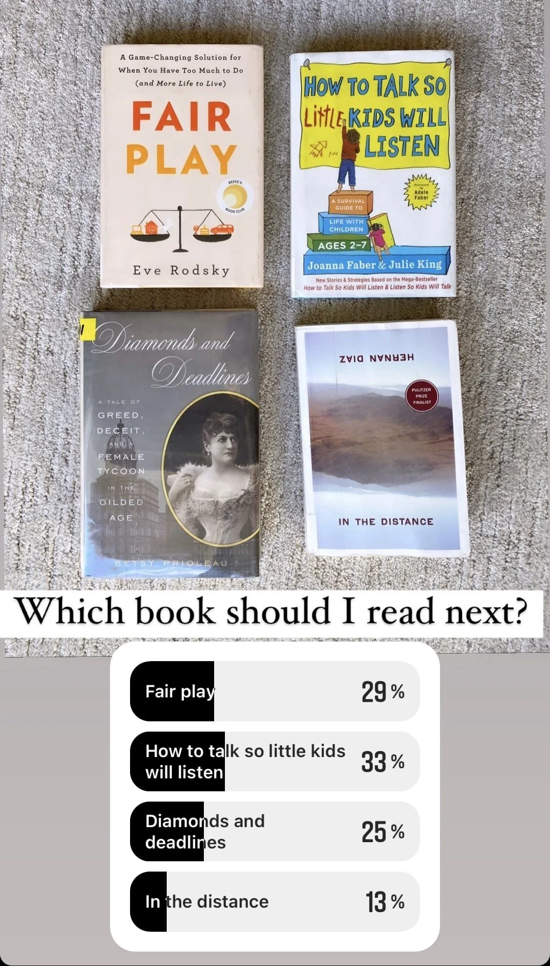 Fair Play by Eve Rodsky: This book reminded me of the Mom Manager Epidemic by Thelan. I’m really lucky with a partner who does his fair share of the work (though we only got to this point with the usual squabbling and compromising). According to the book I hold about 25 cards on my own (out of 100), and I’m a Collaborator married to a More Than Most (basically a person who has someone helping them for many of the household chores). But if you find that you’re doing an unfair share of the work then this book might be for you. I think Fair Play is a lot more specific on how to get your partner to take on more household/child care work but it can feel a tad homework-y at times. I will say that this book did make me realize there are some household tasks that neither my husband and I are getting around to (estate planning for example), and we should probably look into that. Lastly, I love that the author emphasizes the goal of freeing up both partners time (via working together efficiently and by not doubling up on the same tasks) is so that each person can have their “unicorn time” (ie the time that allows you to work on your passions and make you feel more like you). As you can imagine my unicorn time is this blog and writing in general—and since I have been making time to do this I feel very content (with making content, har har).
