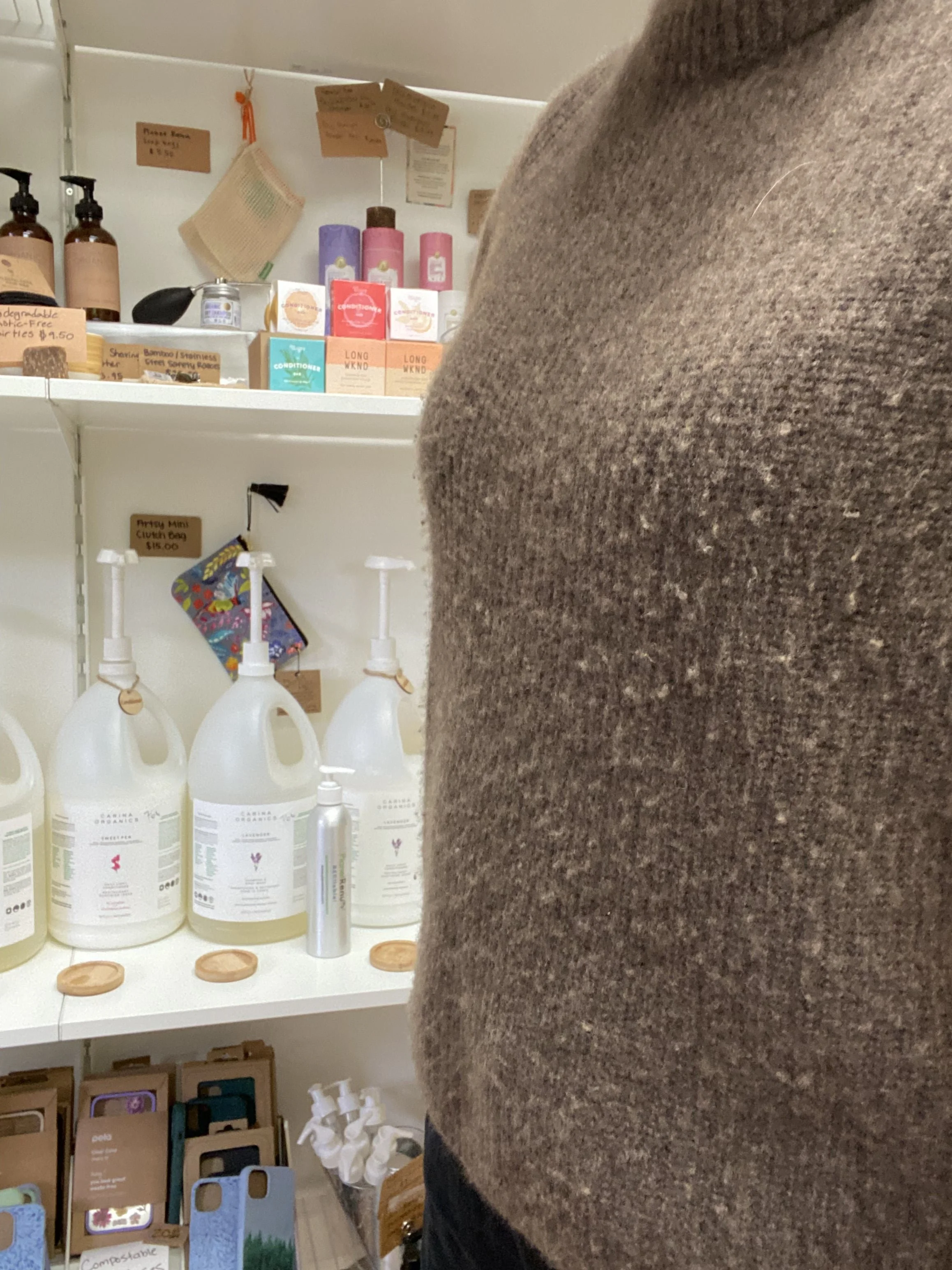 Baby Alpaca Wool Quarter Zip (worn in the photo above and below): I really really loved this sweater when I first got it and it even made honorable mention in my Most Worn Quince Items in 2022 post. Since then I’ve worn it A LOT. And it pilled like crazy: small little balls everywhere. Then I de-pilled it with my sweater shaver and it looked decent for a bit. Now it looks like the pictures below: still pilling some but also just more wisps of fiber everywhere (as opposed to little balls). I still wear the sweater because I love the feel and the style, but I would wear a different sweater if I wanted to look more polished.