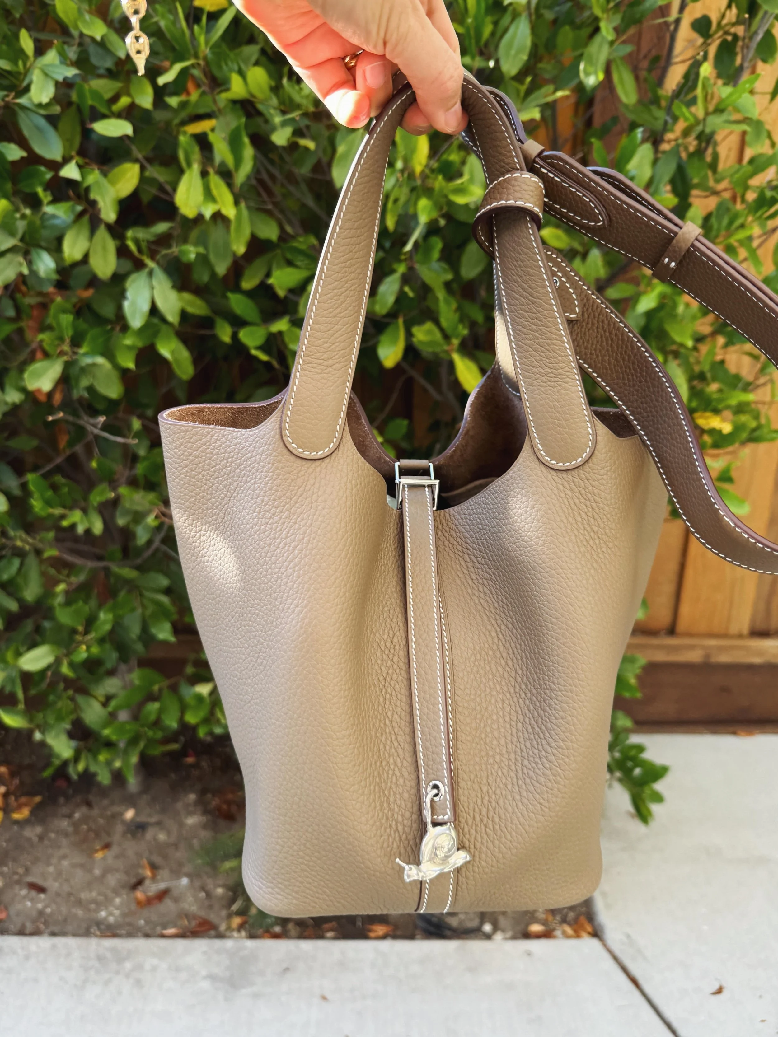 As I mentioned in one of my monthly recap posts, I got this bag from the Hermes boutique in Waikiki during one of my visits home. I found a really nice SA there who offered me this after the purchase of the Roulis wallet. Even though Picotins are pretty common on the resale market, they’re also commonly faked so I decided to play it safe and get it straight from the store (even though it’s about $1-$2k more than resale prices). So how do I like it?