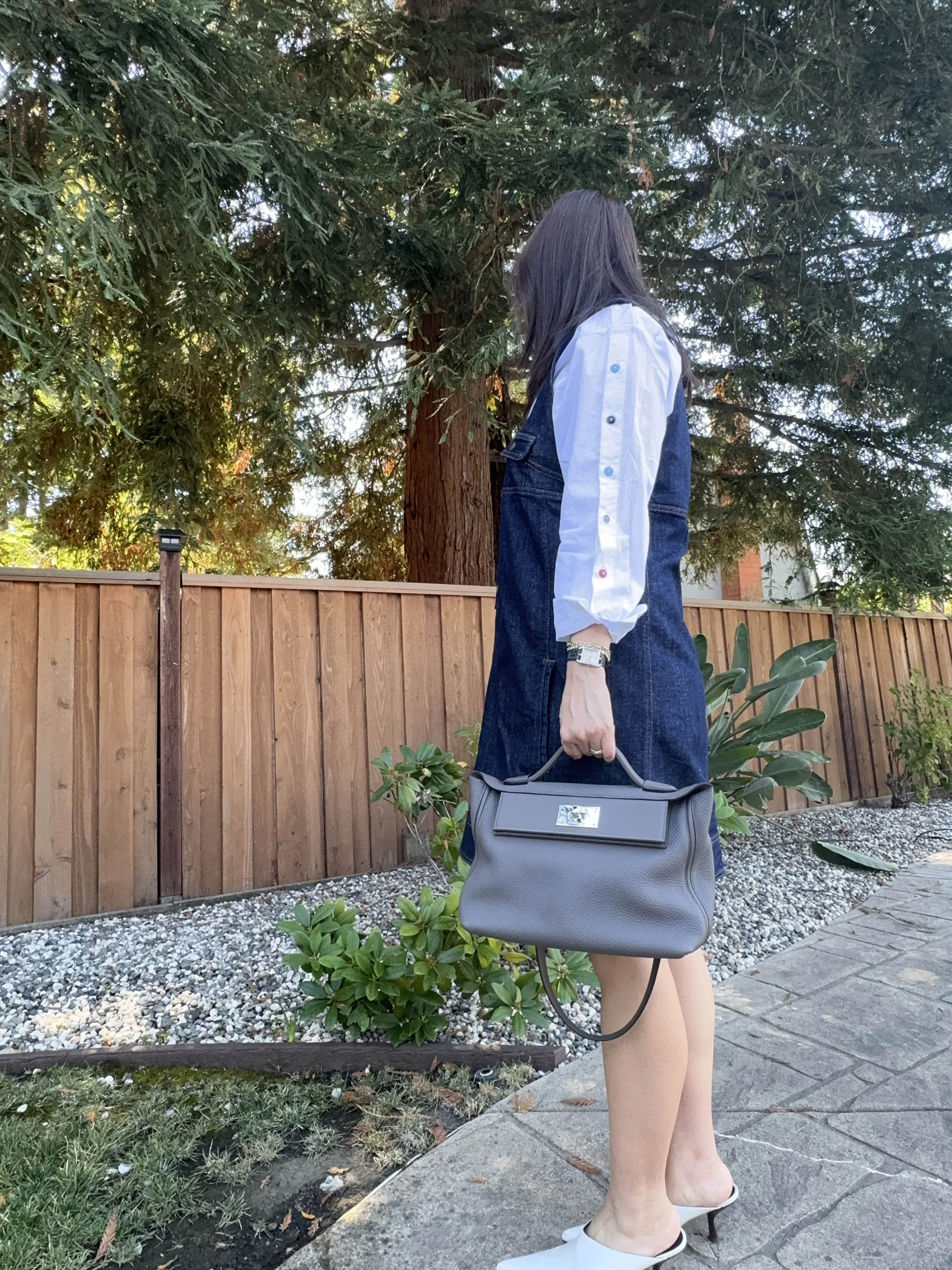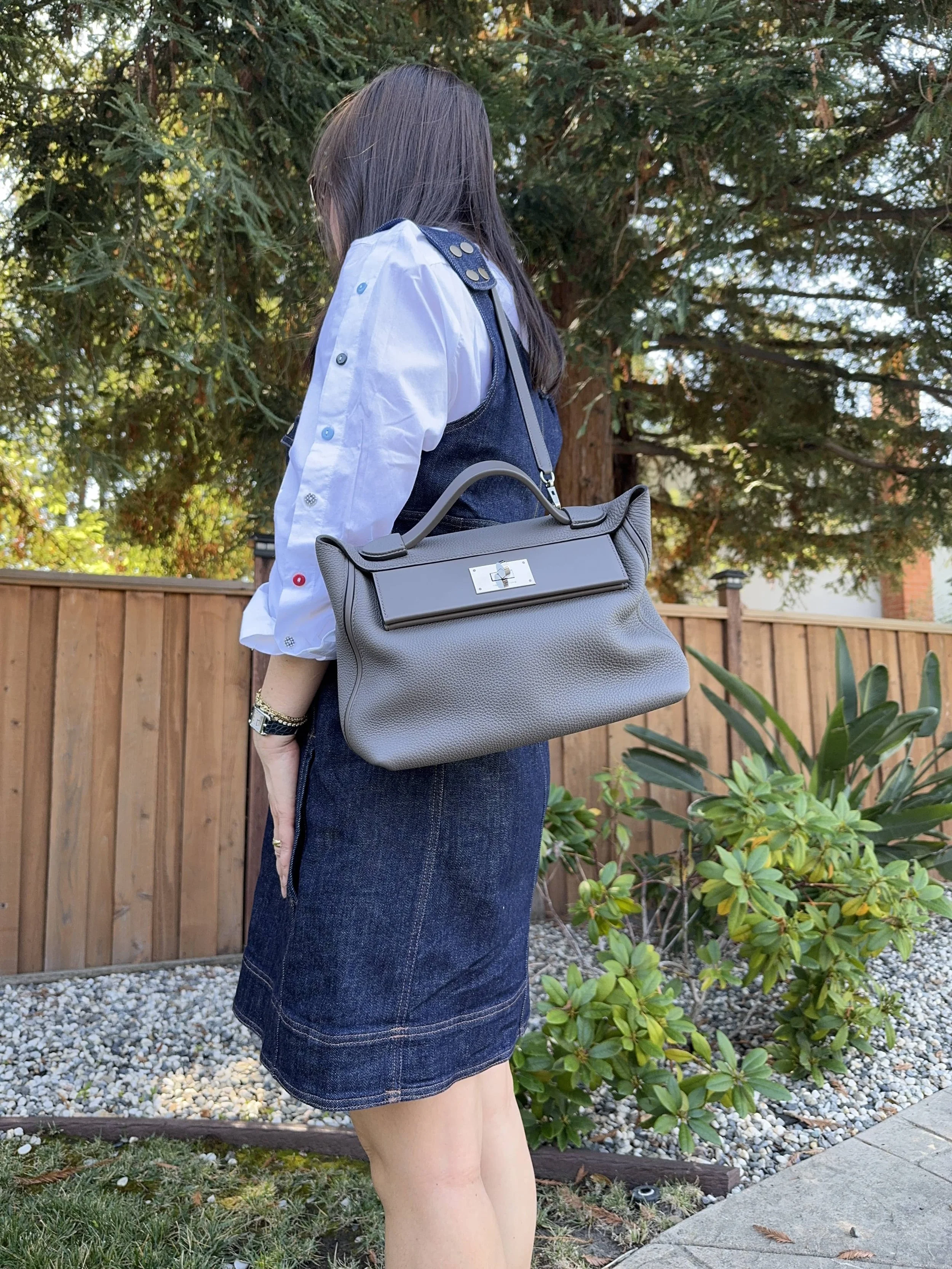 First off, I should mention I have never owned the 24/24 in the 21 size so take my review with a grain of salt (I’ve just tried it on at the RealReal in Marin). But I have the 29 size (in Etain Togo and Swift leather from 2020) and I have to say, I don’t like it. The main reason I don’t like it and never use it is because it’s heavy. The front panel that’s the main feature of the bag is super heavy. The bag weighs in total 2 pounds and 2.4 oz empty. Add my usual essentials and that’s 3 pounds easy.